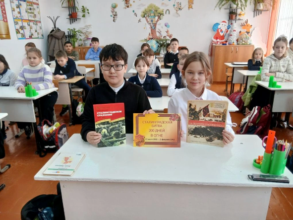 Сотрудники Центральной деской библиотеки для учащихся школы №1 провели час исторической памяти "Великий подвг Сталинграда".