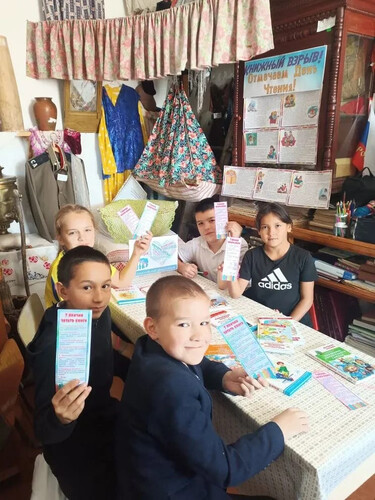 В завершение ребятам были розданы закладки "7 причин читать книги". К мероприятию была подготовлена книжная выставка, а также тематическая выставка "Книжный взрыв! Отмечаем день чтения!"
