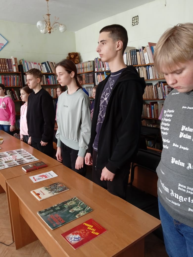 Из рассказа сотрудников библиотеки школьники узнали о подвигах мальчишек и девчонок, бесстрашно и гордо шагнувших в зарево войны, в грохот канонады. Ребята познакомились с героическими и вместе с тем трагическими судьбами юных героев, которые служили связными, разведчиками, писали и расклеивали листовки, а когда нужно – брали в руки оружие и сражались наравне со старшими. Многие из них погибли – от вражеских пуль, расправ, пыток. Пусть жизнь этих подростков была недолгой, но память о них продолжает жить в наших сердцах.
