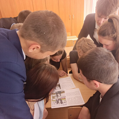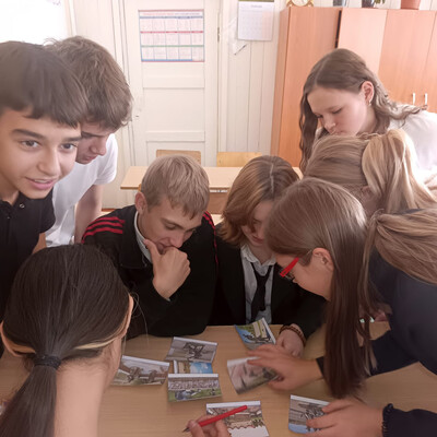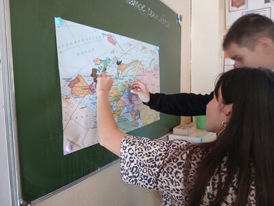 В заключительном задании разгадывали ребус, в котором был зашифрован город, где стоит памятник литературным героям, а затем расставляли памятники по городам на карте, и у нас получилась своеобразная карта памятников.