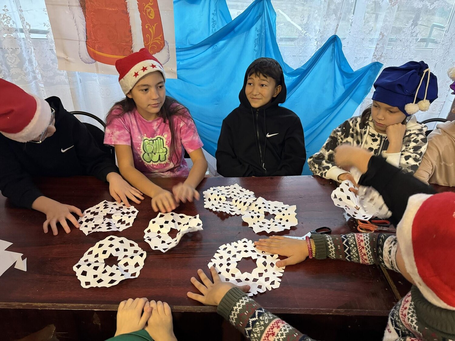 Затем внимание детей привлекла интерактивная часть программы. Одним из популярных конкурсов стала сказочная викторина, где дети проверяли свои знания о русских народных сказках и героях. Следующим этапом стало творческое задание. Участники мастерили своими руками новогодние украшения и снежинки. Завершилась встреча чтением стихов о зиме и Дедушке Морозе. Стихи звучали эмоционально и выразительно, вызывая улыбки у всех присутствующих.